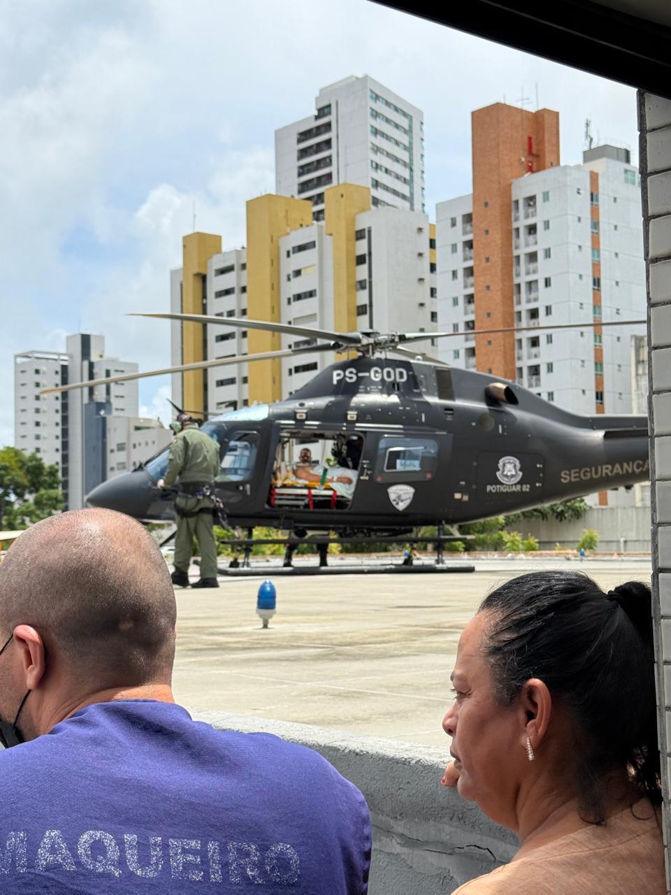O helicoptéro “Potiguar 02” foi acionado e fez o transporte do policial até Natal.