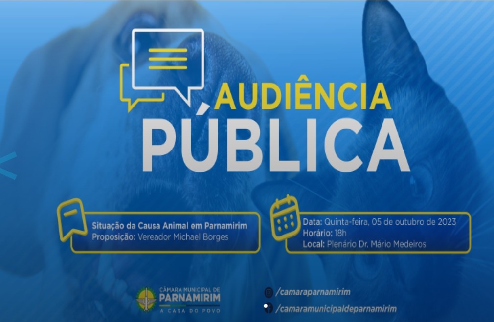 A Câmara Municipal de Parnamirim realiza, nesta quinta-feira (5), às 18h, uma audiência pública para debater situação da causa animal no município. De proposição do vereador Michael Borges (PSDB), a debater temas como a execução de emenda impositiva para castração de cães e gatos, o pagamento subvenções sociais a instituições do terceiro setor e ações do Abril Laranja.